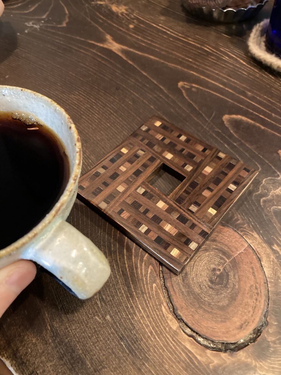 コーヒーの下のコースターも可愛いのよ。
